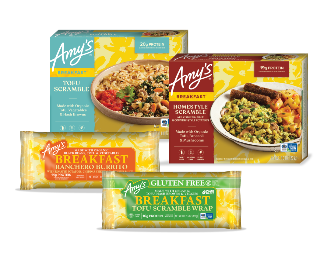 Start your day with Amy’s! Whether you are looking for something on-the-go or a delicious, protein-packed meal, we have you covered. Enjoy our new selection of breakfast entrées, burritos and wraps. They are ready for you to enjoy any time of day.